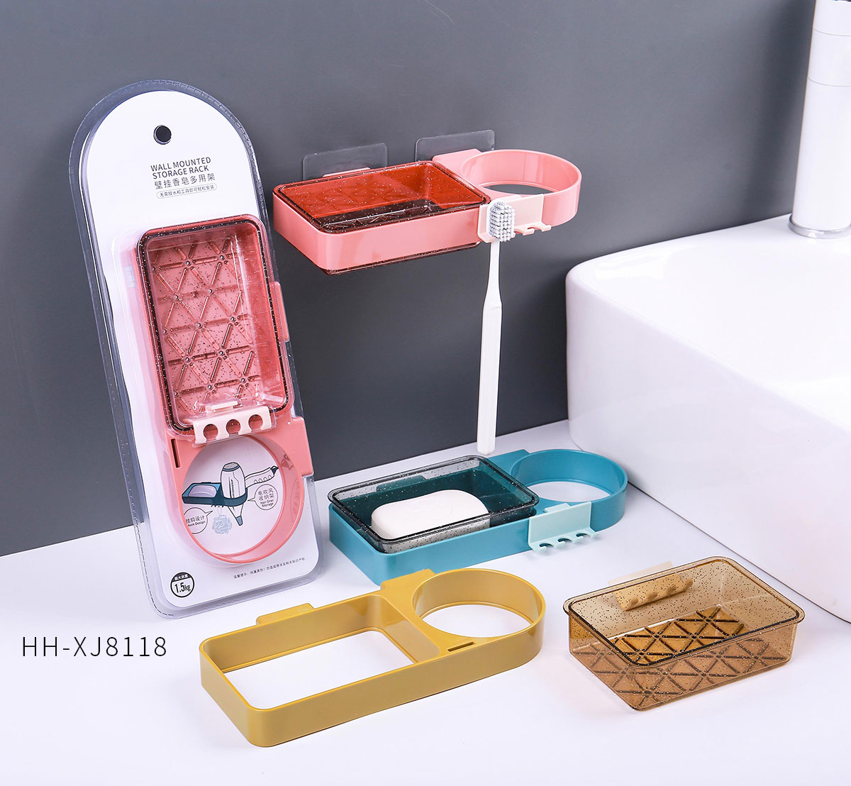 晶透壁掛皂盒收納架/多用架/(簡裝)